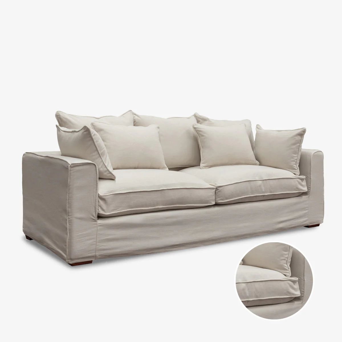 The Clara 2-Seater Sofa Slipcovers in off white with boucle piping offer a fresh, elegant update to your sofa. Featuring stunning boucle piping, these slipcovers add a touch of luxury and subtle contrast.